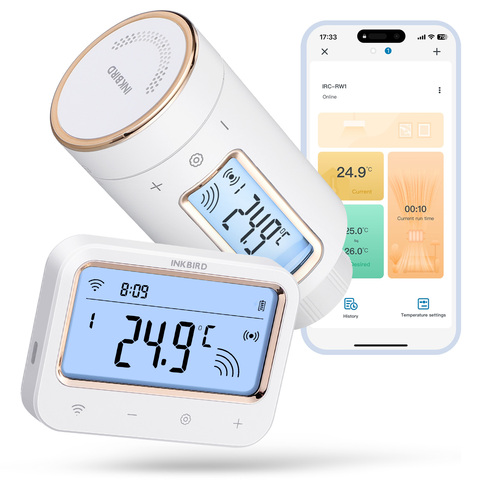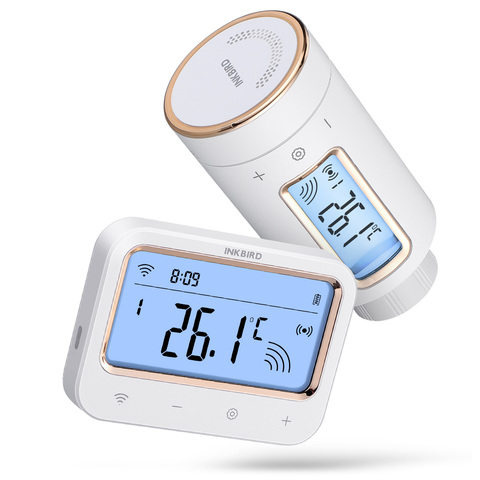 इंकबर्ड IRC-RW1 वाईफाई स्मार्ट रेडिएटर थर्मोस्टैट वाल्व उच्च/निम्न तापमान अलार्म के साथ, चाइल्ड लॉक, कम बैटरी अलार्म